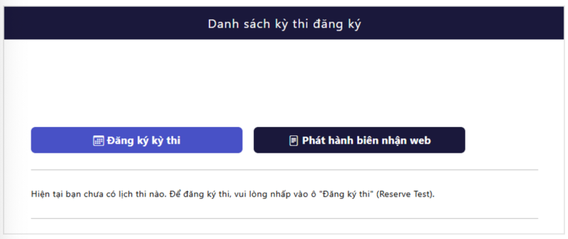 Sau khi đăng nhập, bạn có thể kiểm tra các kỳ thi bạn đã đăng ký.