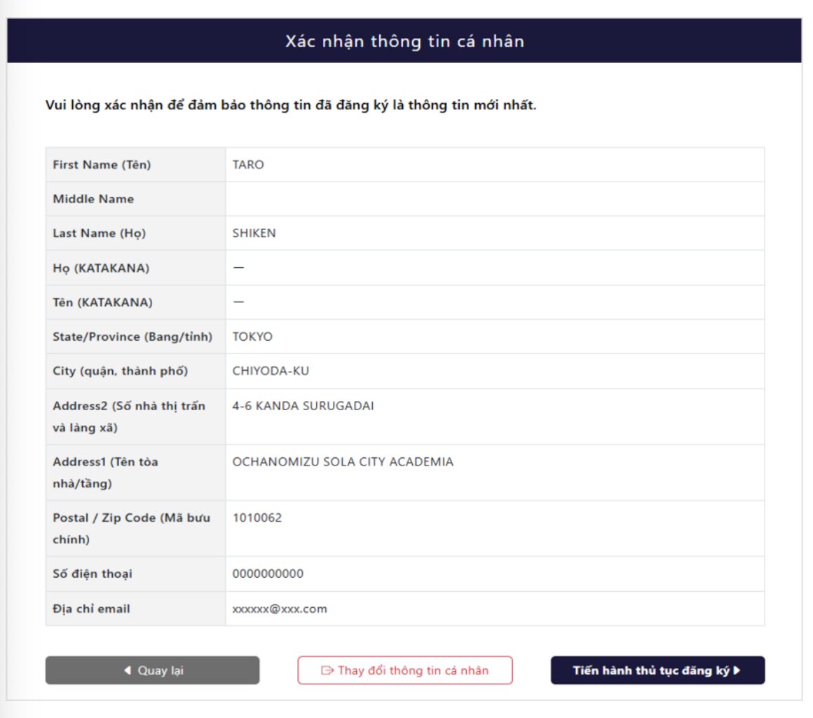 Bước 4: Xác nhận thông tin đăng ký