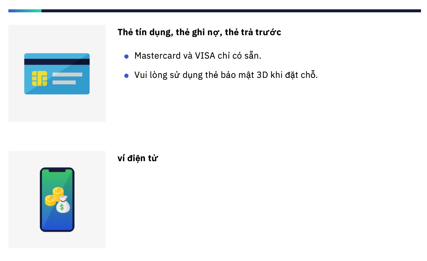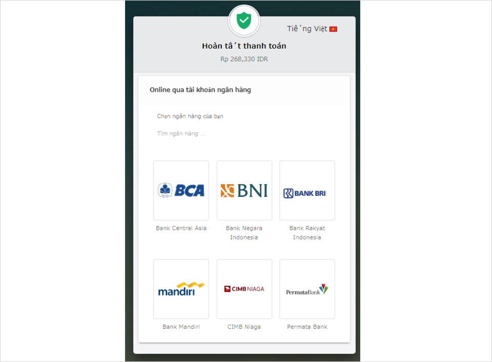Các phương thức thanh toán khả dụng sẽ được hiển thị.