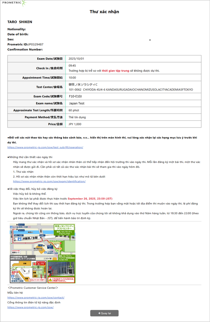 Thư xác nhận sẽ được hiển thị cho đến ngày thi. Nếu bạn cần, vui lòng lưu dữ liệu trước ngày thi.