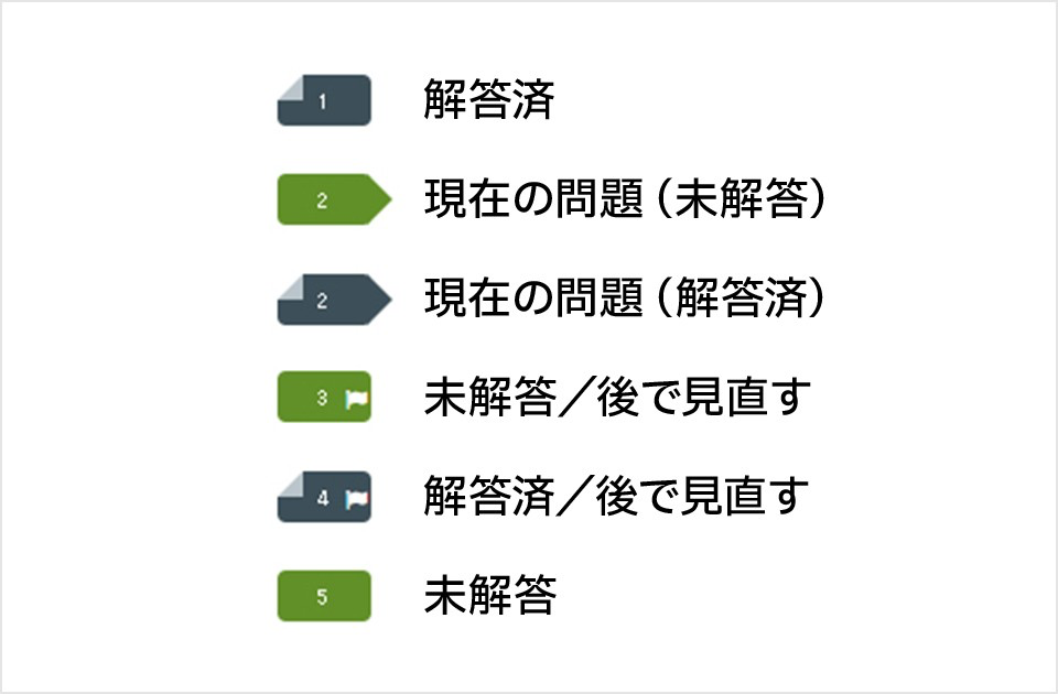 解答済 / 後で見直す : Đã trả lời/ đánh dấu xem lại