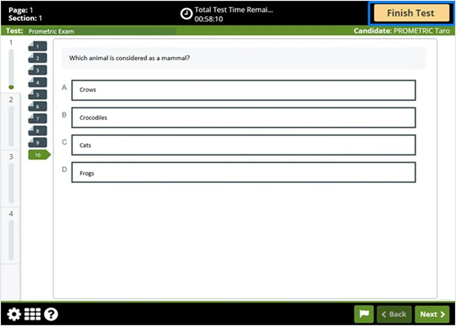 Nhấp vào nút “Bắt đầu kiểm tra” hoặc “Tiếp theo” đối với một số bài kiểm tra để bắt đầu kiểm tra