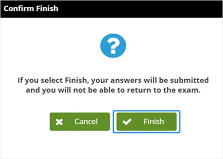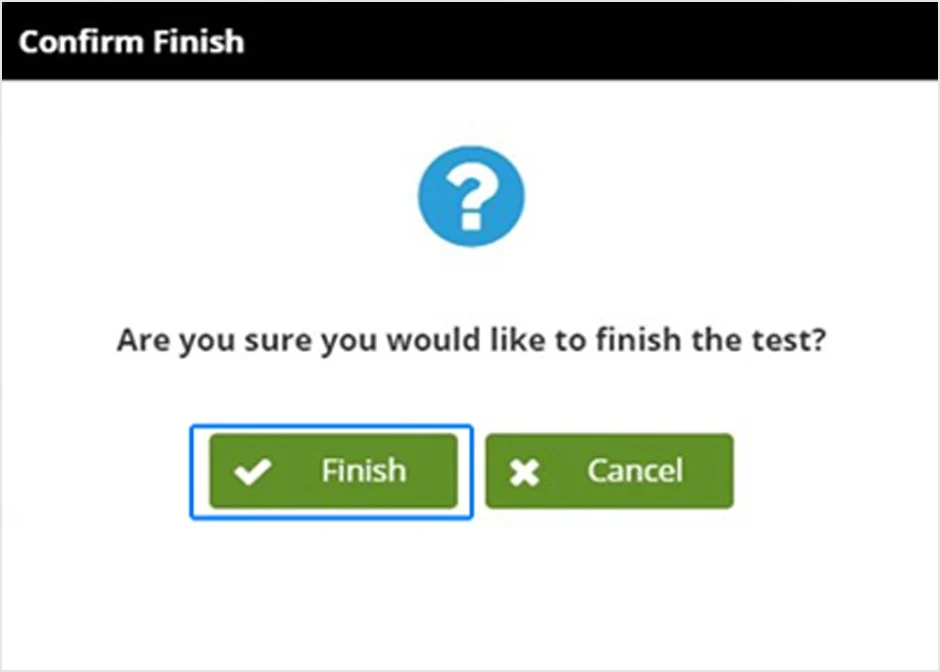 Khi nhấn "Finish Section/ kết thúc phần", màn hình xác nhận sẽ xuất hiện.