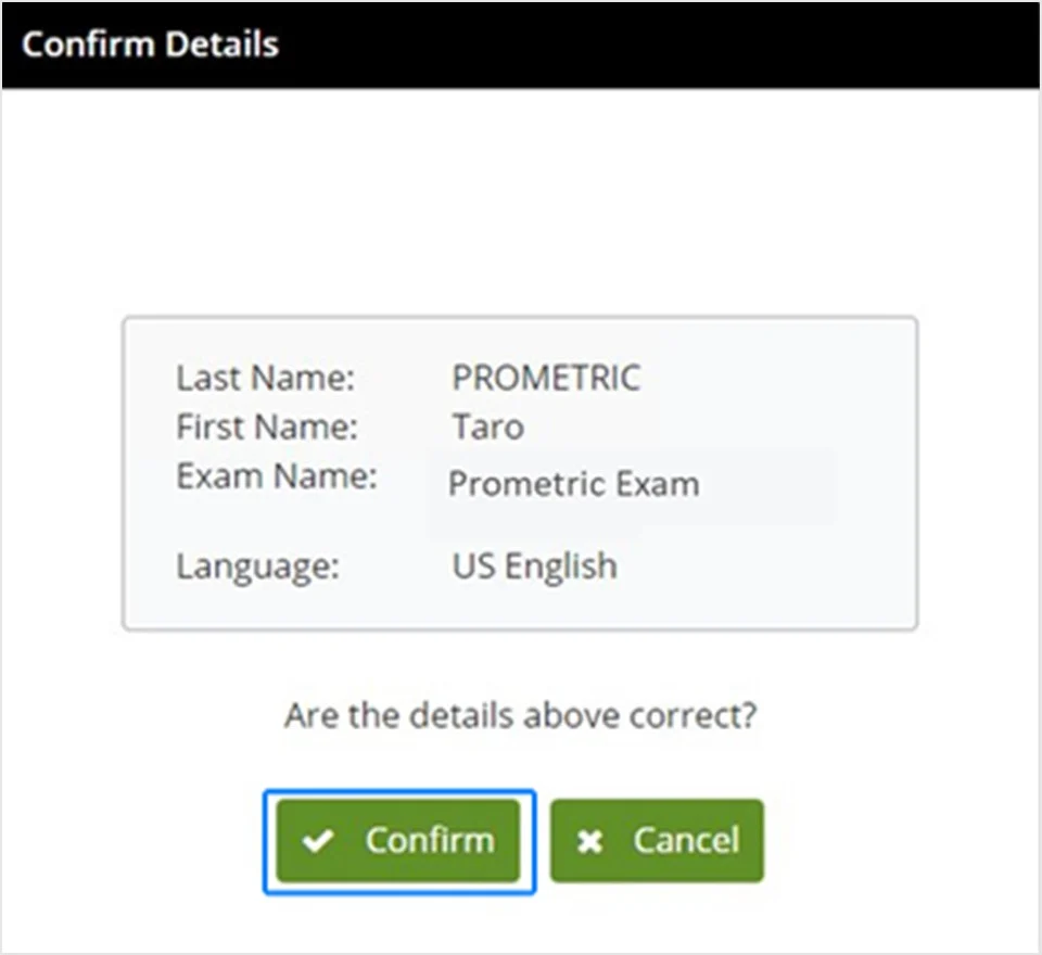 Nếu mọi thứ đều chính xác, hãy nhấp vào “Xác nhận”. Nếu có bất kỳ lỗi nào vui lòng dơ tay thông báo cho giám thị.
