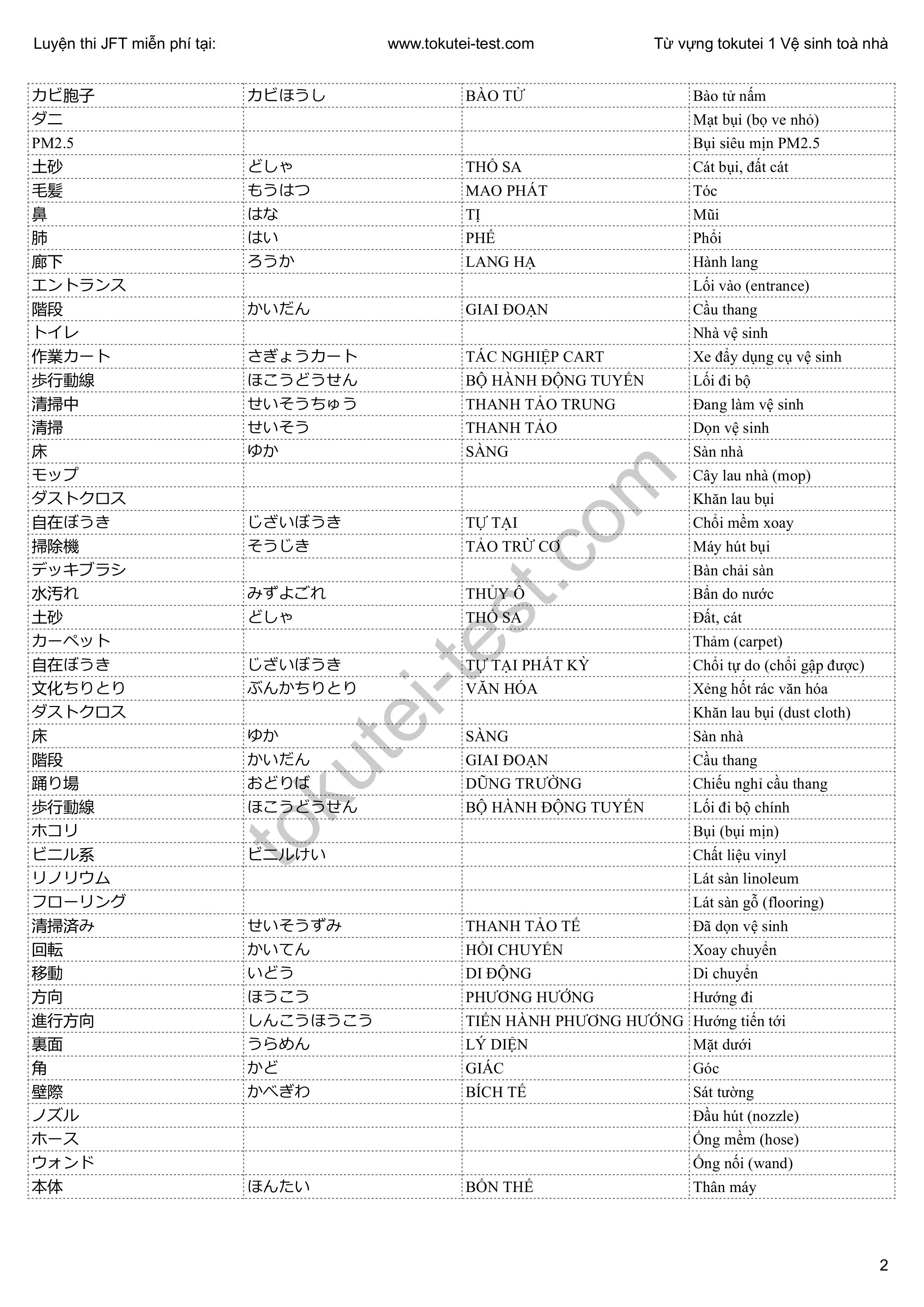 🔹 Xem đầy đủ tại: [tokutei-test.com] TỪ VỰNG TOKUTEI VỆ SINH TOÀ NHÀ